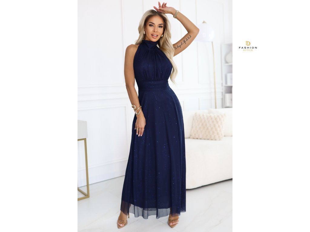 Šaty Veronica - luxusní dlouhé šaty s leskem - námořnicky modré