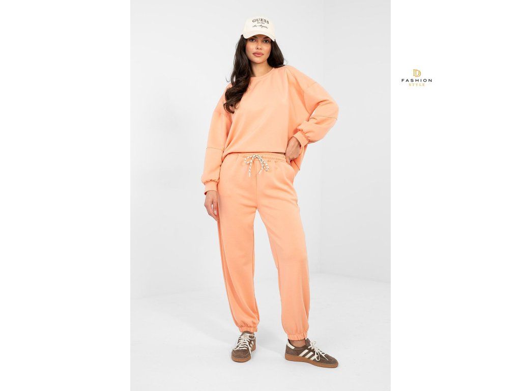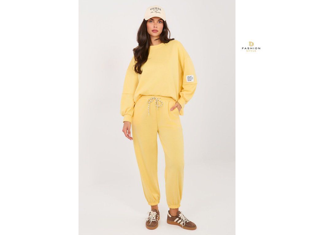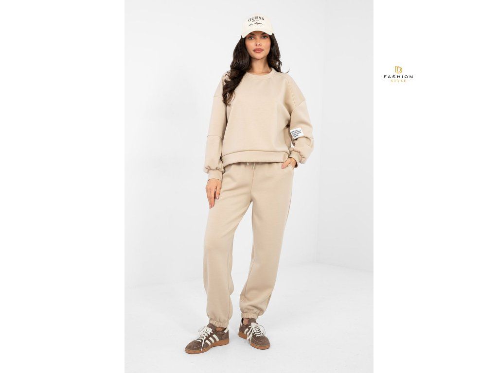 Elegantní sportovní set v casualovém provedení je ideální volbou pro každodenní styling. Hladký vzor mu dodává univerzální charakter, díky čemuž se skvěle hodí jak při odpočinku, procházkách, tak i ve městských outfitech. Mikina s dlouhým rukávem a kulatým výstřihem poskytuje pohodlí a nadčasový vzhled. Další výhodou je decentní nášivka umístěná na levém rukávu, která celku dodává módní akcent. Kalhoty s dlouhými nohavicemi zakončenými manžetami se skvěle přizpůsobí postavě. Vysoký pas zdůrazňuje pas a zvyšuje pohodlí nošení, a boční kapsy dodávají funkčnost. Set je vyroben z měkké a elastické směsi viskózy a elastanu, což zaručuje pohodlné nošení, volnost pohybů a dokonalé přizpůsobení postavě. Je to pohodlný a stylový set na každý den. Materiál typu "máslo" je měkký, jemný a mimořádně příjemný na dotek.